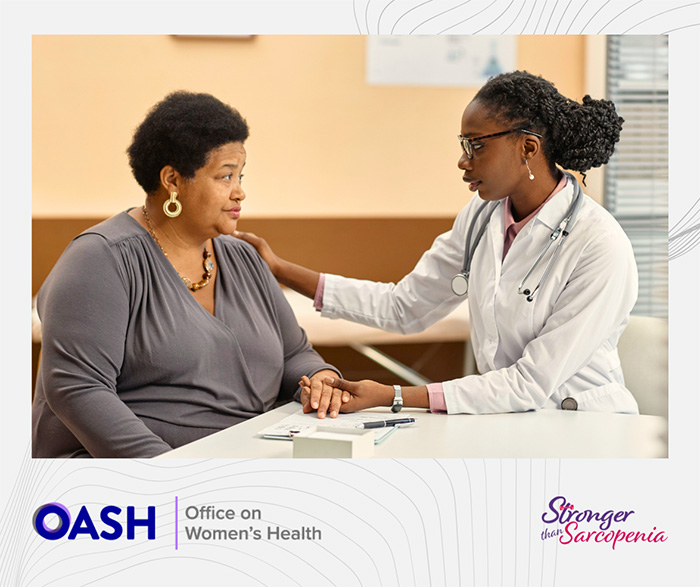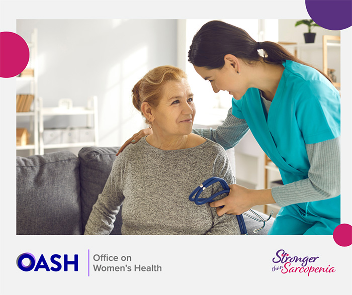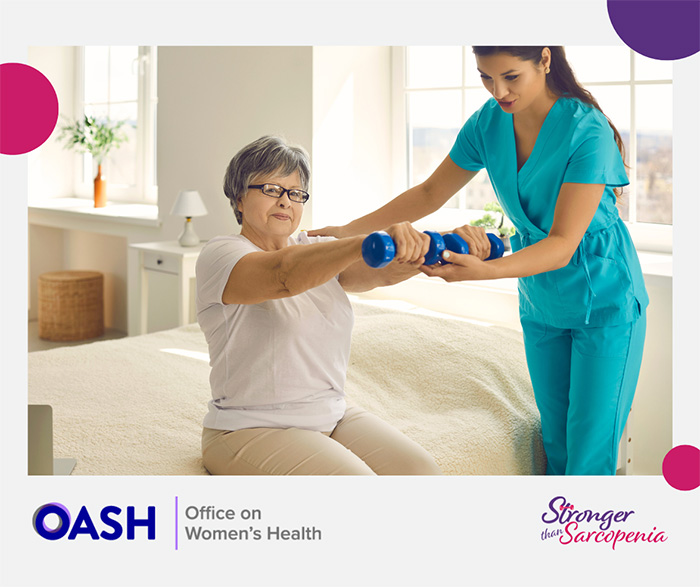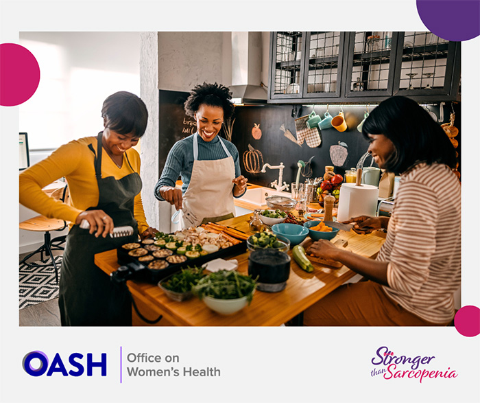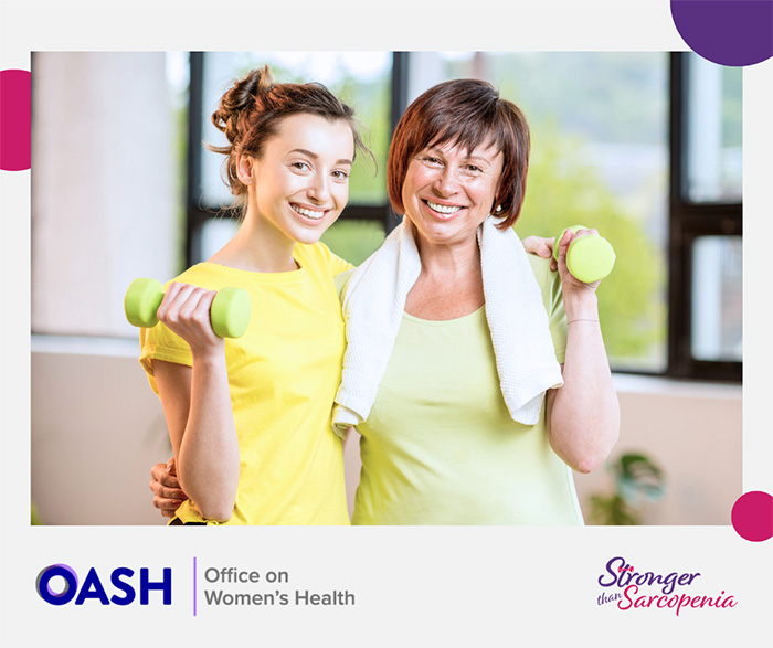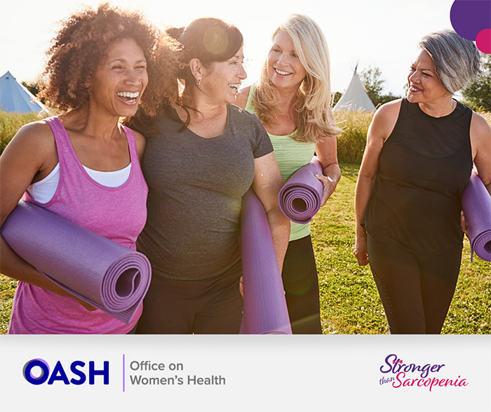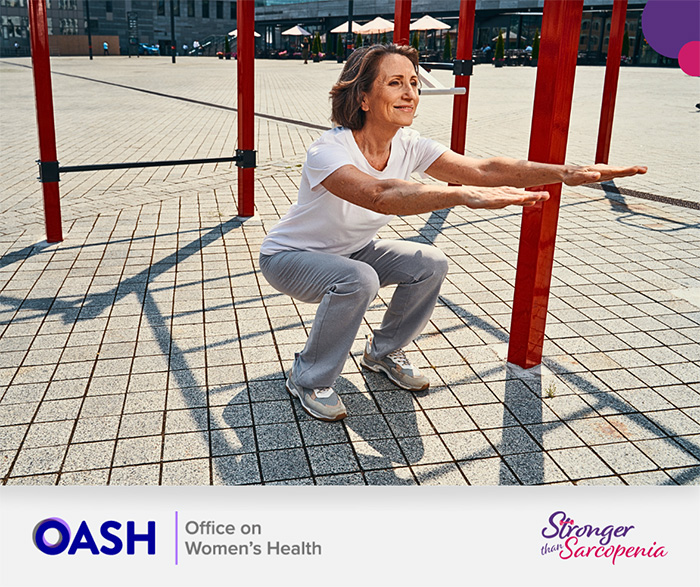 Follow and tag @HHSOWH on Facebook, @womenshealth on X, and @HHS Office on Women's Health on LinkedIn. Be sure to use the campaign hashtag in the social media messages: #StrongerThanSarcopenia.