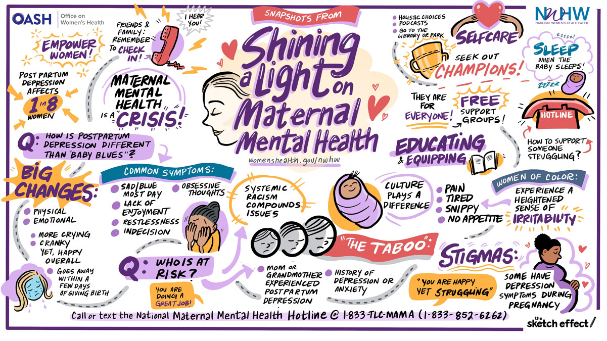 During the annual observance of National Women’s Health Week (NWHW), the U.S. Department of Health and Human Services' Office on Women's Health (OWH) hosted a webinar titled, “Shining a Light on Maternal Mental Health: Signs, Symptoms, and Support for Postpartum Depression”.